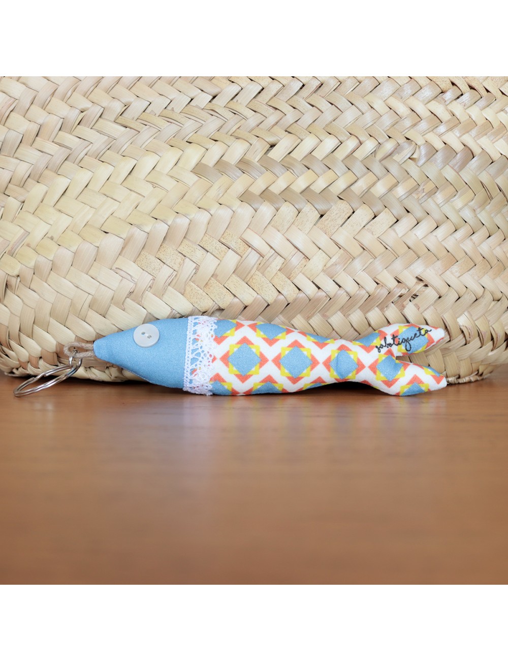 Amb una mida de 14,5 x 3 cm, és perfecte per trobar les teves claus ràpidament, decorar bosses o motxilles, o regalar a aquella persona amant del mar i de les peces fetes a mà. Oferim 12 dissenys diferents perquè puguis escollir la sardineta que més t’identifiqui. Només cal que indiquis el disseny que prefereixes en fer la comanda o ens escriguis a info@sabotigueta.cat per consultar la disponibilitat.